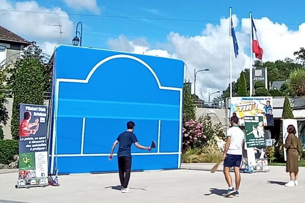 Le fronton mobile est un véritable outil pédagogique qui permet de faire découvrir la pelote basque en tout lieu. Adapté aux associations, ALSH et structures éducatives, il est disponible en prestation pour l’initiation, avec mise à disposition du matériel et encadrement assuré par le club.